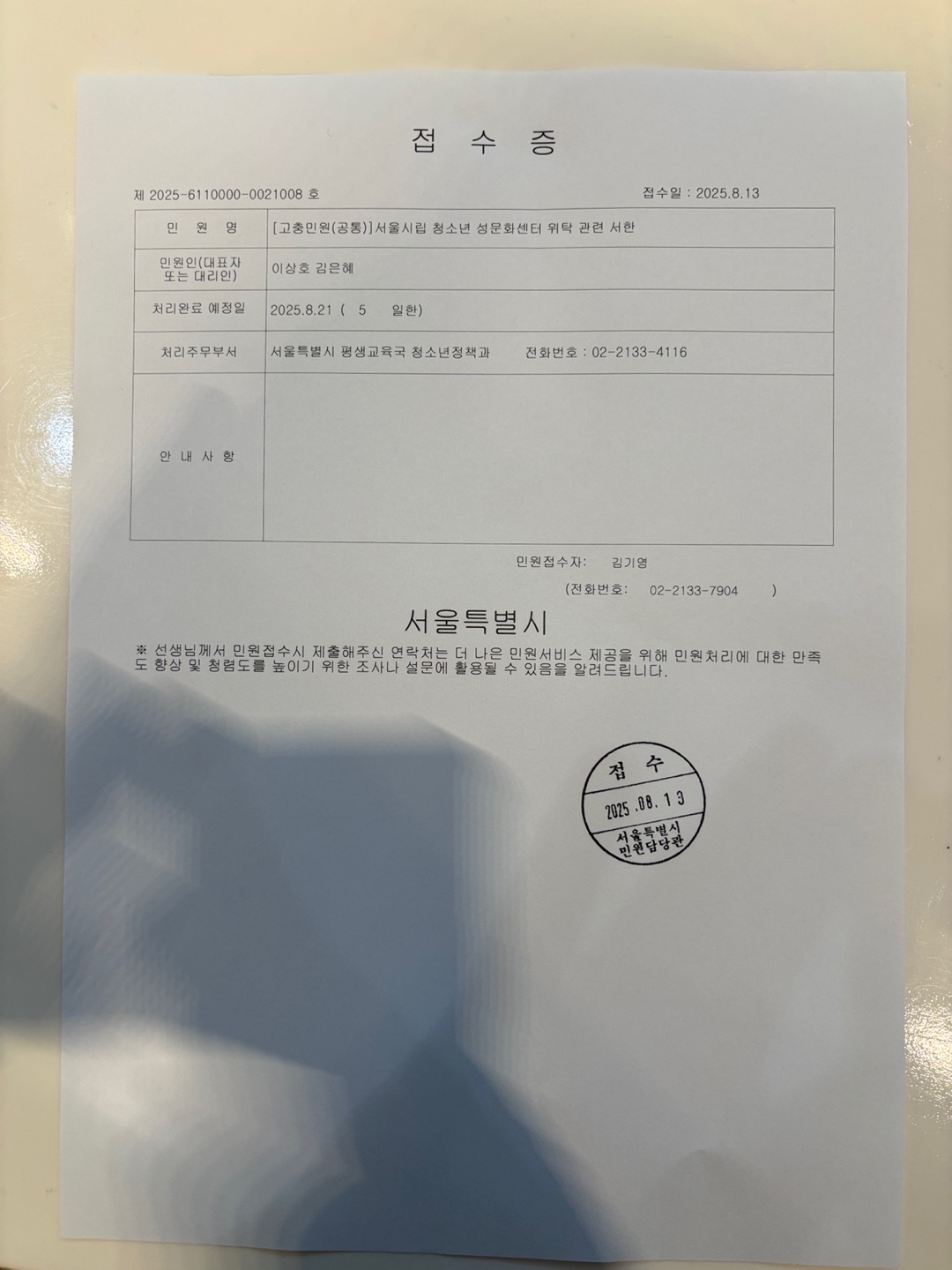 25.08.13 (수)│서울시립청소년성문화센터 올바른 위탁운영기관 선정촉구 기자회견